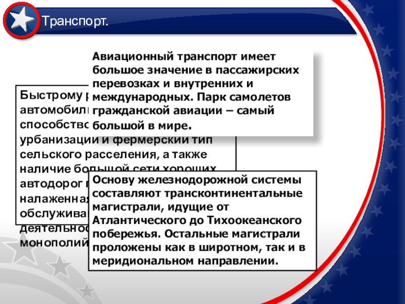 расселения, а также наличие большой сети хороших автодорог по всей стране, налаженная система тех обслуживания и активная деятельность автомобильных монополий.