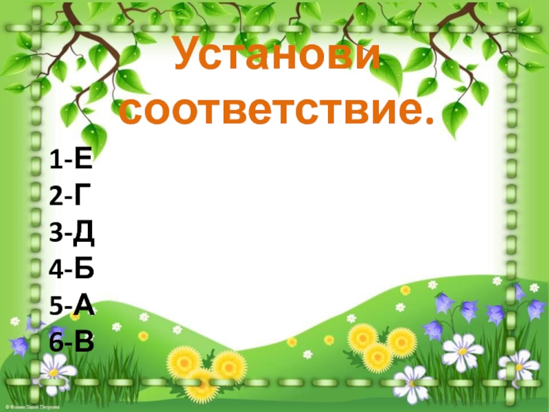 Слайд 171-Е 2-Г 3-Д 4-Б 5-А 6-В