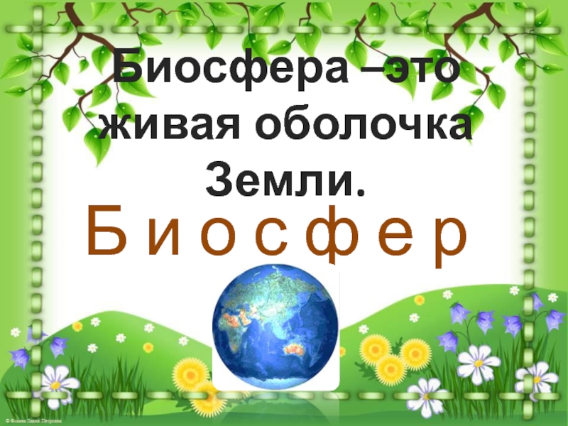 Биосфера –это живая оболочка Земли.Б и о с ф е р а.