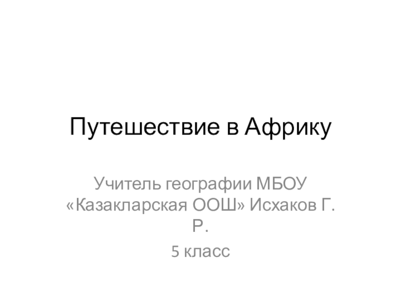 Путешествие в АфрикуУчитель географии МБОУ «Казакларская ООШ» Исхаков Г.Р.5 класс
