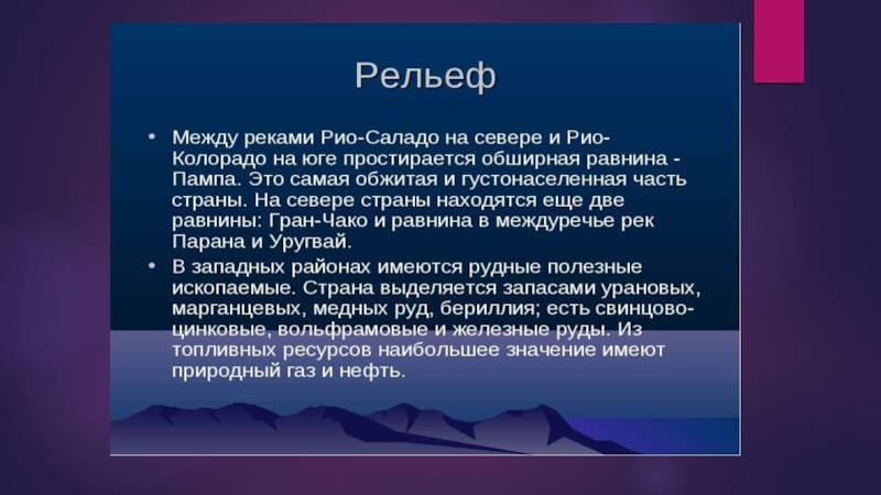 Слайд 10РЕЛЬЕФ АРГЕНТИНЫ