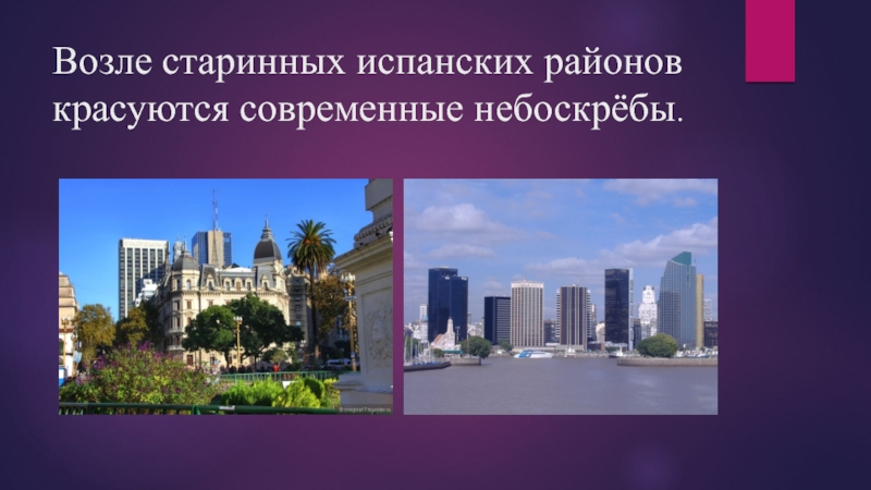 Слайд 8Возле старинных испанских районов красуются современные небоскрёбы.