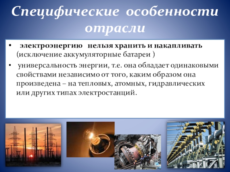 электроэнергию нельзя хранить и накапливать (исключение аккумуляторные