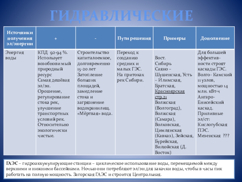 ГАЭС – гидроаккумулирующие станции – циклическое использование воды, перемещаемой между