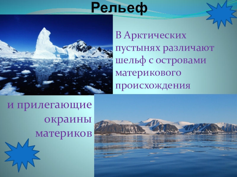В Арктических пустынях различают шельф с островами материкового происхождения