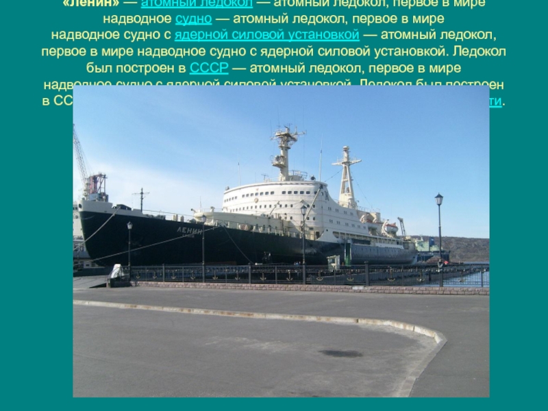Слайд 24«Ле́нин» — атомный ледокол — атомный ледокол, первое в мире надводное судно — атомный ледокол, первое в мире