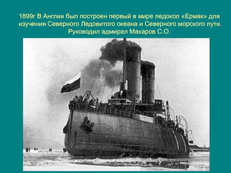 1899г В Англии был построен первый в мире ледокол «Ермак» для изучения Северного Ледовитого океана и Северного