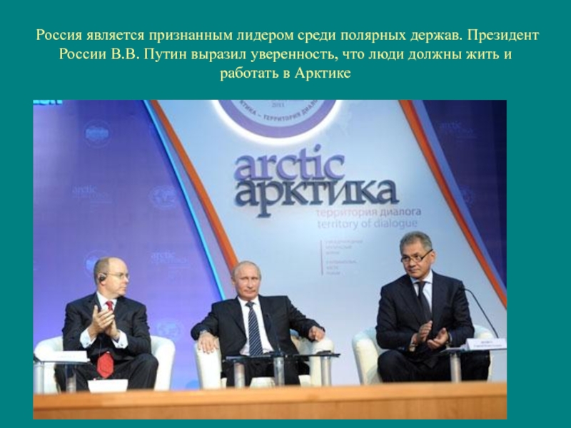 Россия является признанным лидером среди полярных держав. Президент России В.В. Путин выразил уверенность, что люди должны жить и работать в Арктике