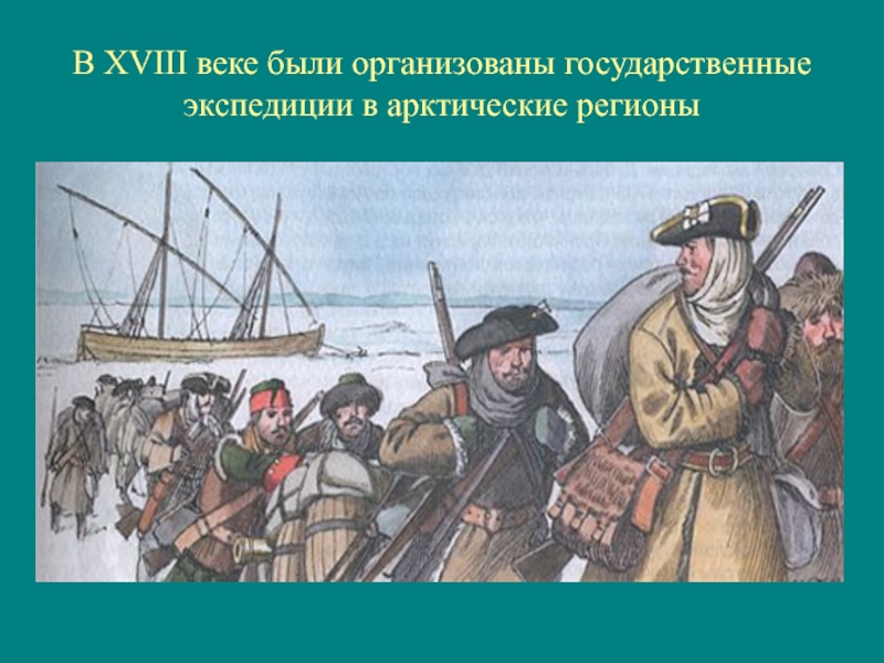 Слайд 10В XVIII веке были организованы государственные экспедиции в арктические регионы
