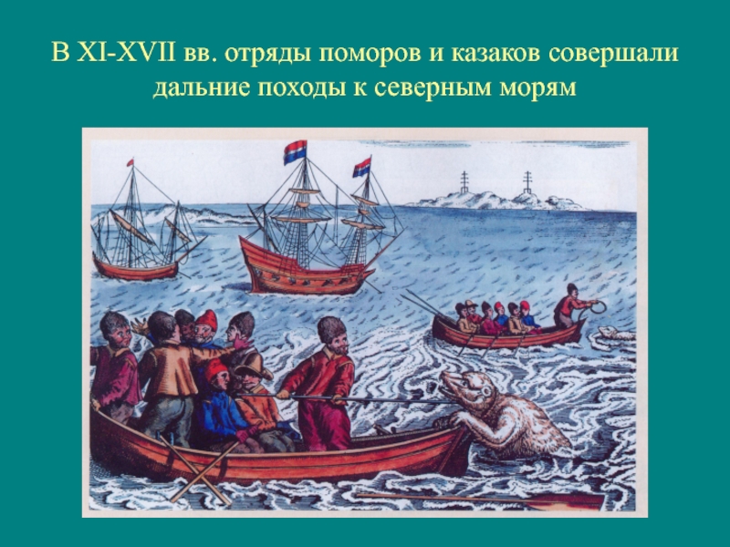 Слайд 7В XI-XVII вв. отряды поморов и казаков совершали дальние походы к