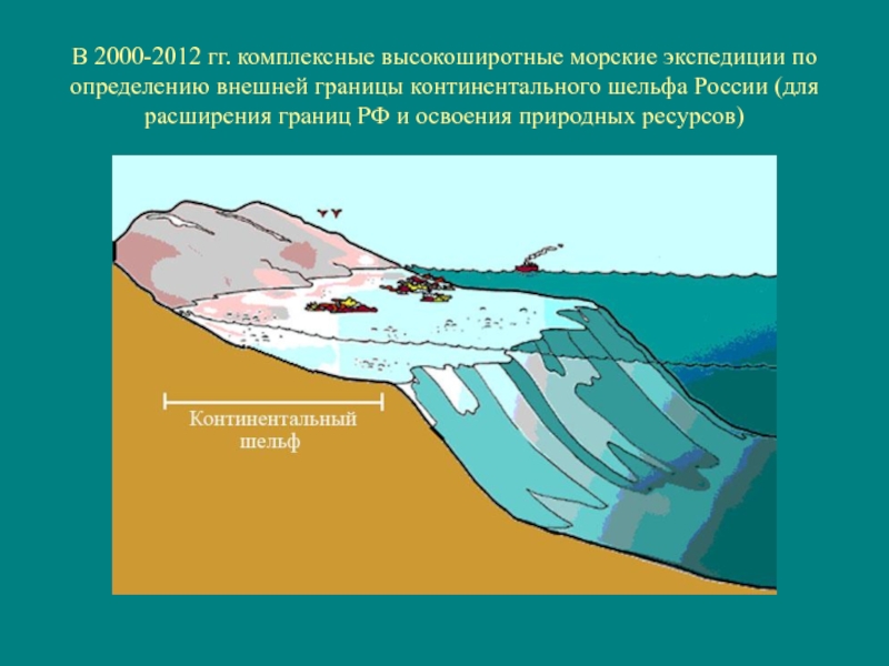 Слайд 28В 2000-2012 гг. комплексные высокоширотные морские экспедиции по определению внешней границы