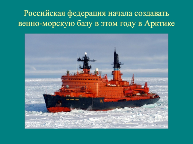 Слайд 27Российская федерация начала создавать венно-морскую базу в этом году в Арктике