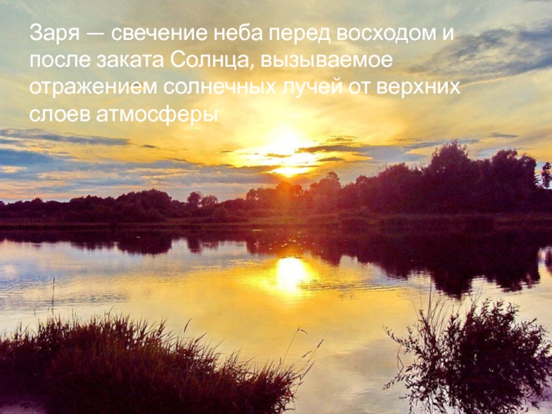 Слайд 6Заря — свечение неба перед восходом и после заката Солнца, вызываемое