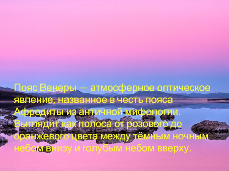 Слайд 10Пояс Венеры — атмосферное оптическое явление, названное в честь пояса Афродиты