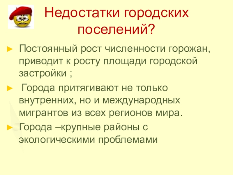 Важнейшими функциями городов со времени начала промышленного переворота стали производство товаров и услуг, управление и межрайонный обмен.