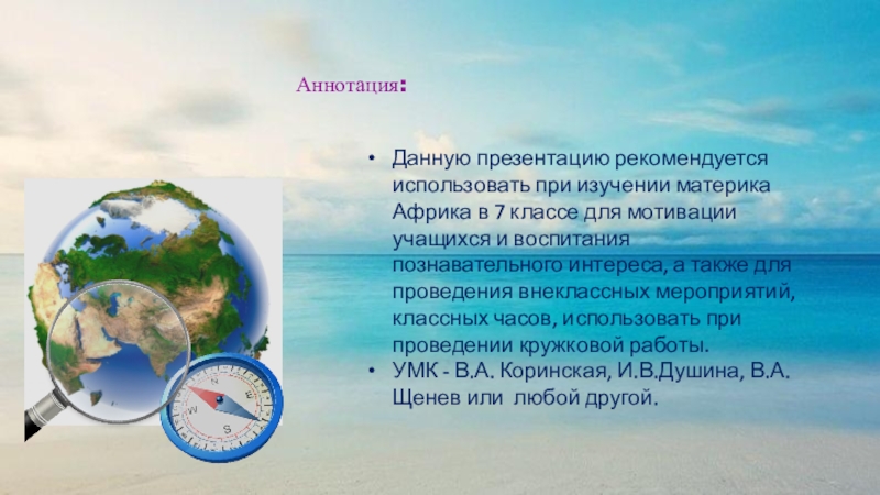Это сайт презентаций, где можно хранить и обмениваться своими презентациями, докладами, проектами, шаблонами в формате PowerPoint с другими пользователями. Мы помогаем школьникам, студентам, учителям, преподавателям хранить и обмениваться учебными материалами.
