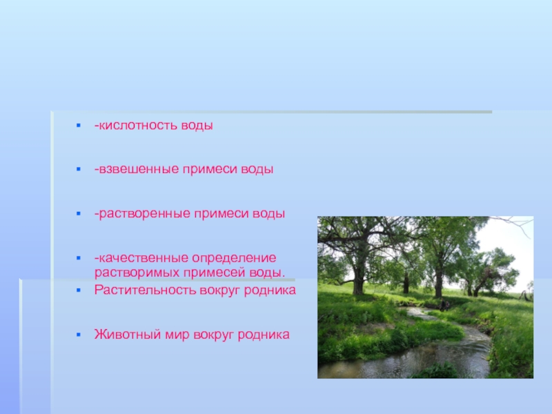 Разработать методику определения воды в родниках.