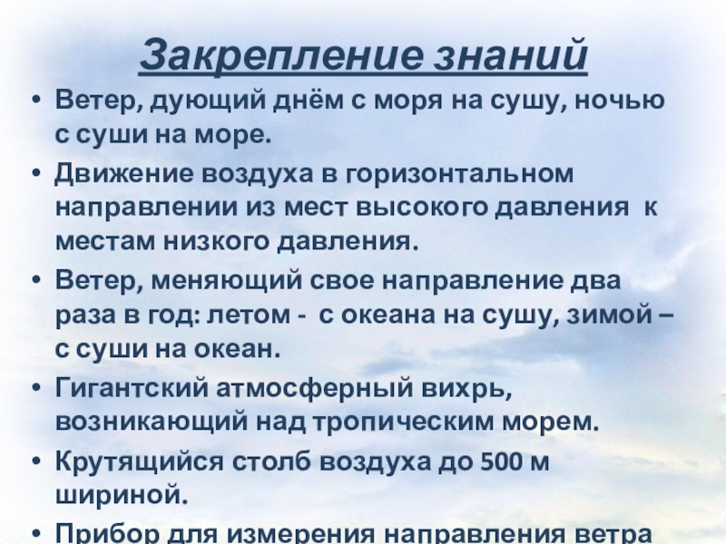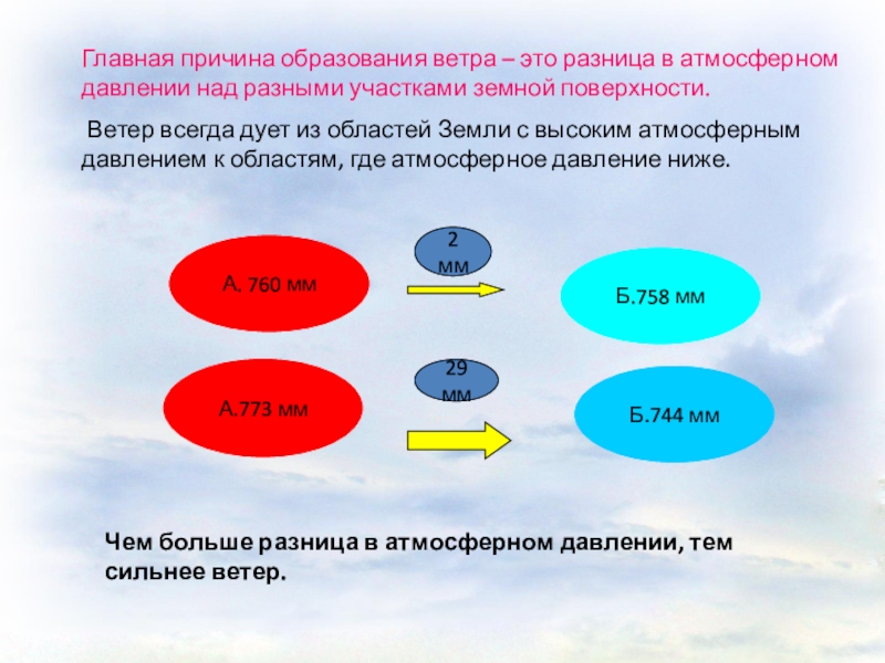 Чем больше разница в атмосферном давлении, тем сильнее ветер.