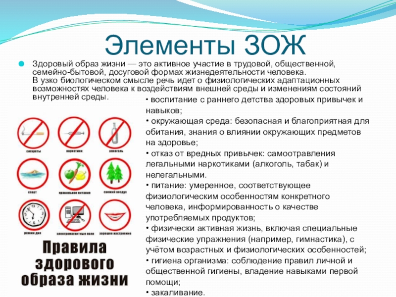 • отказ от вредных привычек: самоотравления легальными наркотиками (алкоголь, табак) и нелегальными.