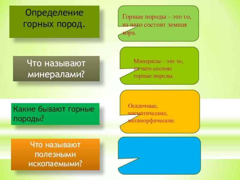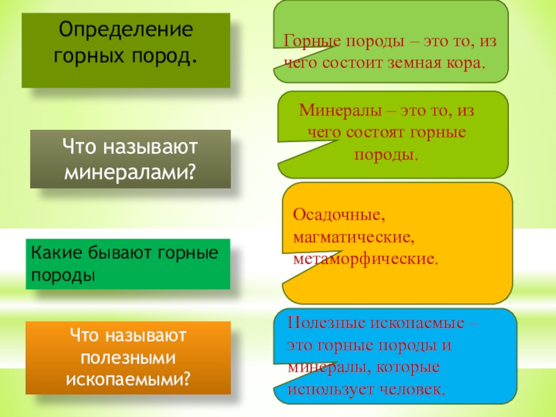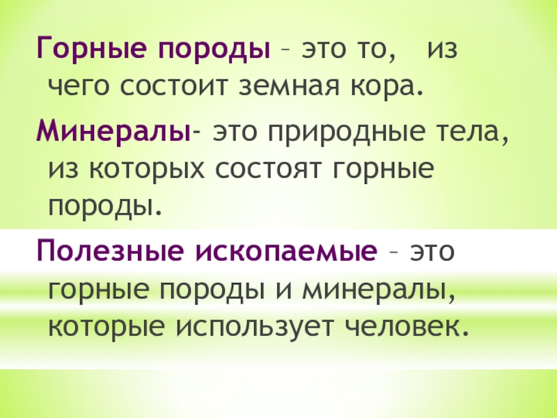 Полезные ископаемые – это горные породы и минералы, которые использует человек.