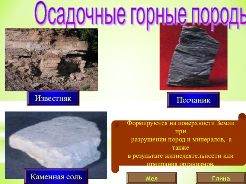 разрушении пород и минералов, а также в результате жизнедеятельности или отмирания организмов ………….. .