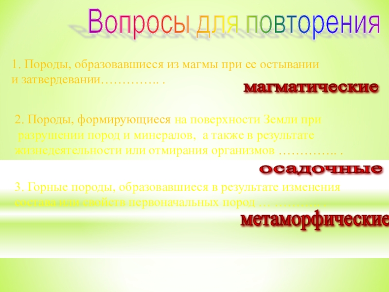 3. Горные породы, образовавшиеся в результате изменения состава или свойств первоначальных пород … ……….. .