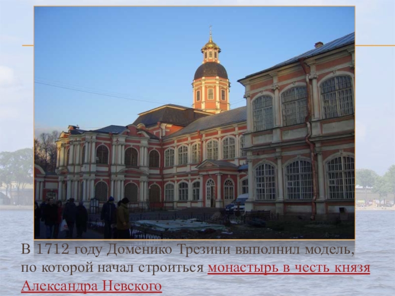 Слайд 7В 1712 году Доменико Трезини выполнил модель, по которой начал строиться монастырь