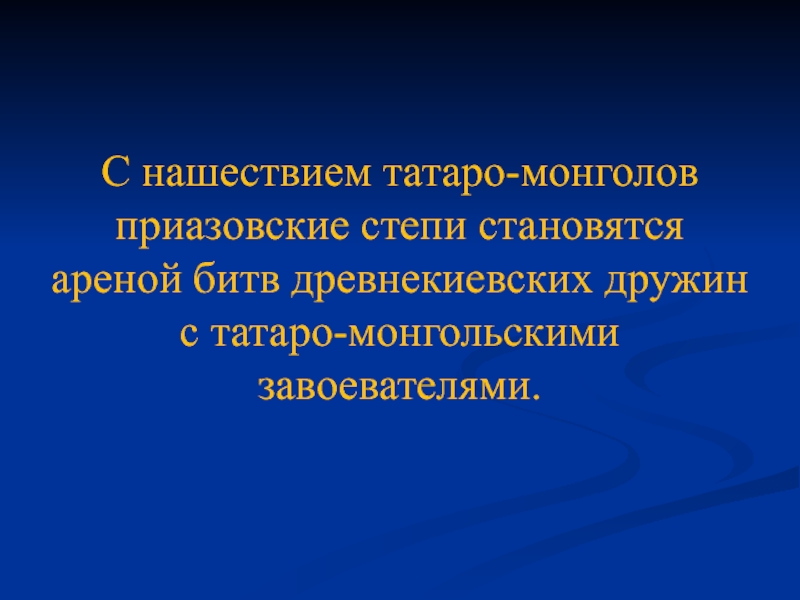 Слайд 17С нашествием татаро-монголов приазовские степи становятся ареной битв древнекиевских дружин с