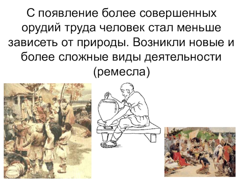 Слайд 15С появление более совершенных орудий труда человек стал меньше зависеть от