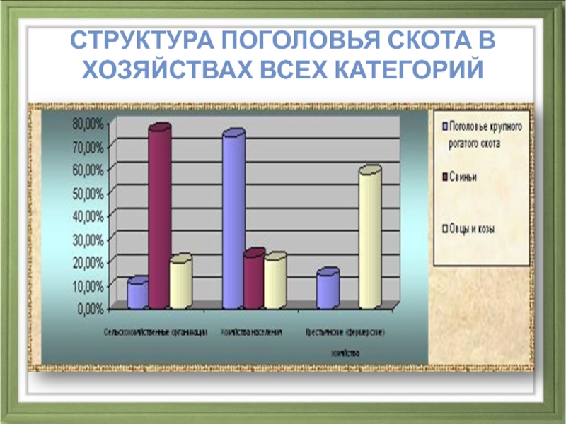 Слайд 12Структура поголовья скота в хозяйствах всех категорий