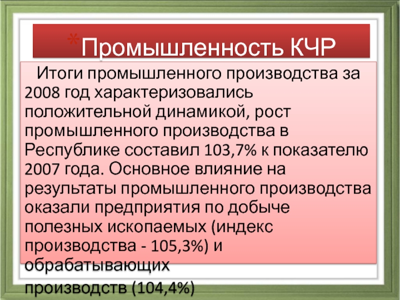 Слайд 13 Итоги промышленного производства за 2008 год характеризовались положительной динамикой,