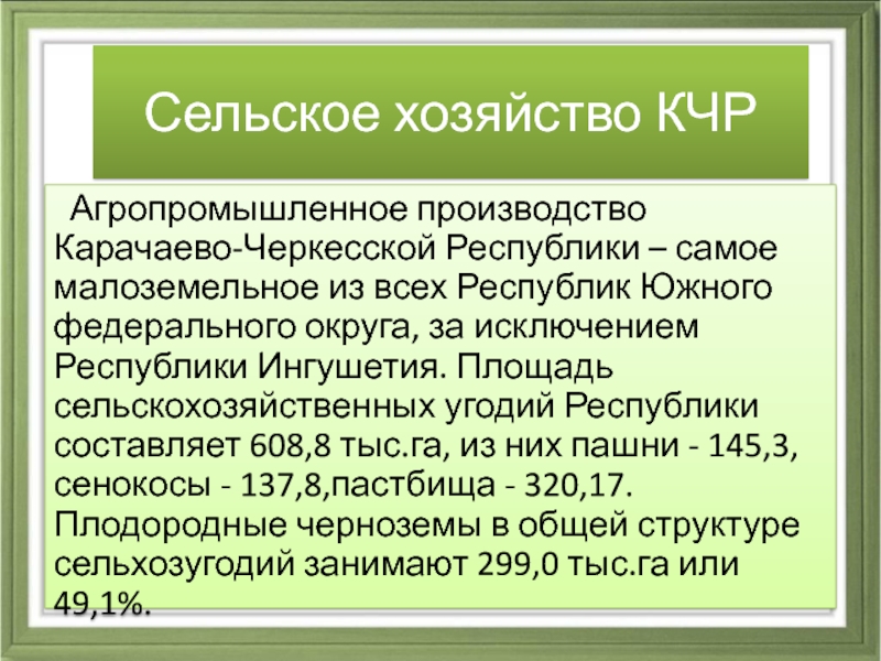 Агропромышленное производство Карачаево-Черкесской Республики – самое малоземельное из