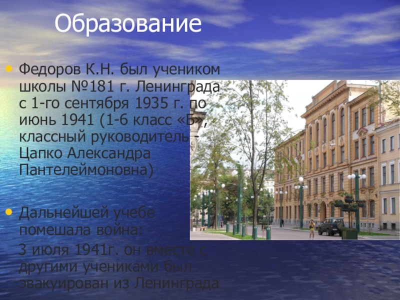Федоров К.Н. был учеником школы №181 г. Ленинграда с 1-го сентября