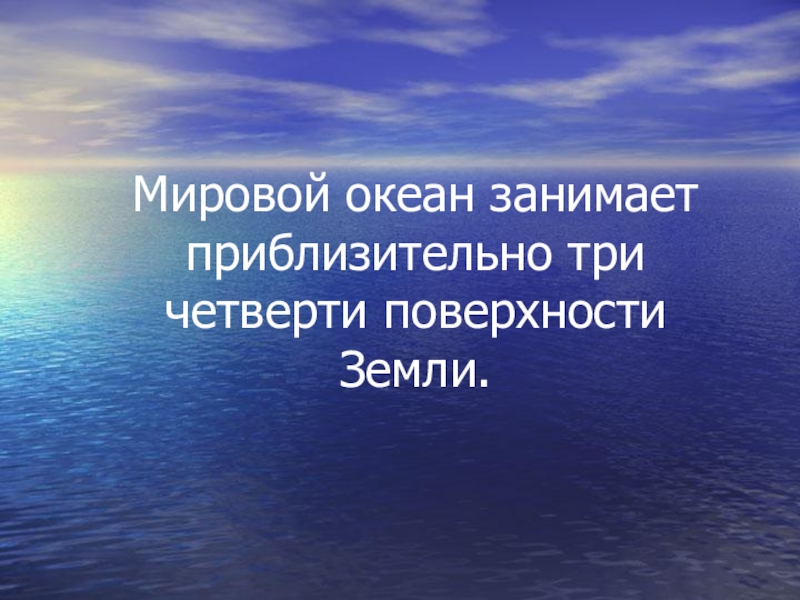 Слайд 11Мировой океан занимает приблизительно три четверти поверхности Земли.
