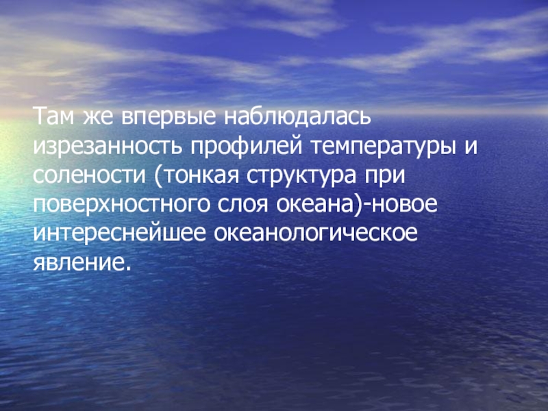 Слайд 105Там же впервые наблюдалась изрезанность профилей температуры и солености (тонкая структура