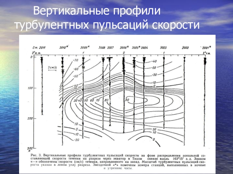 Слайд 109 Вертикальные профили турбулентных пульсаций скорости