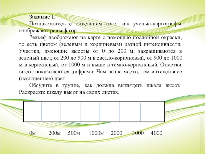 Примечание. Каждой группе дается набор изображений животных и фрагменты карты с подписанными значениями высот в разных точках.