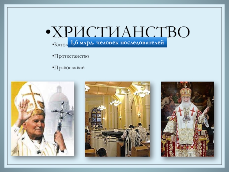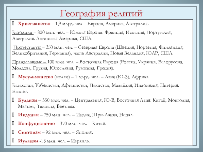 Христианство – 1,9 млрд. чел – Европа, Америка, Австралия.