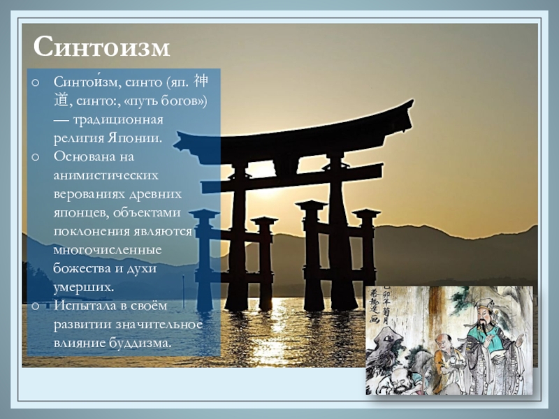 Синтои́зм, синто (яп. 神道, синто:, «путь богов») — традиционная религия