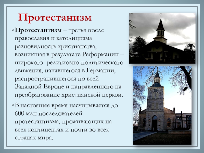 Протестантизм – третья после православия и католицизма разновидность христианства, возникшая