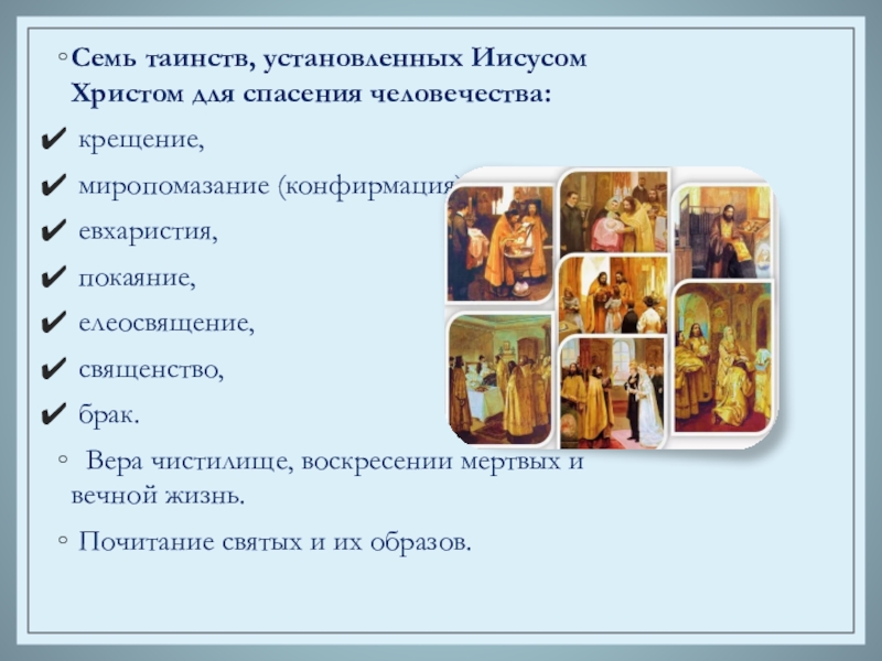 Слайд 13Семь таинств, установленных Иисусом Христом для спасения человечества: