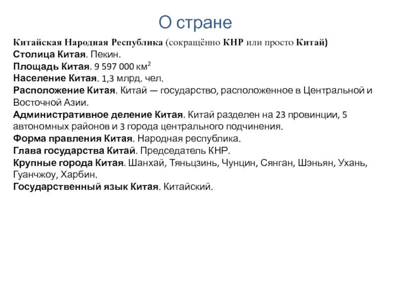 Китайская Народная Республика (сокращённо КНР или просто Китай)