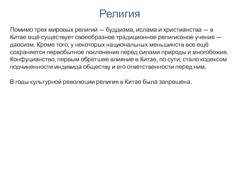 В годы культурной революции религия в Китае была запрещена.