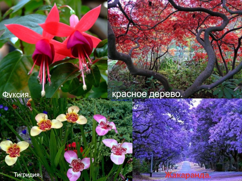 Фуксия.Тигридия.Жакаранда.красное дерево.