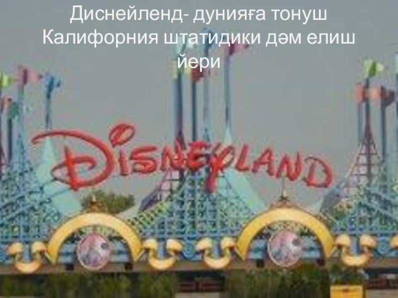 Слайд 40Диснейленд- дунияға тонуш Калифорния штатидики дәм елиш йери