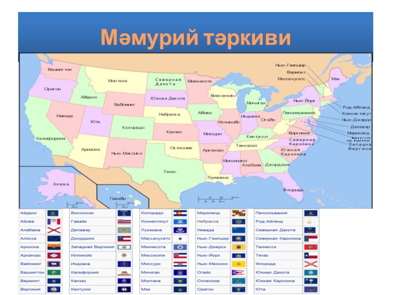 Әкимчилик қурулуми: Федеративлиқ республика 50 штаттан туриду