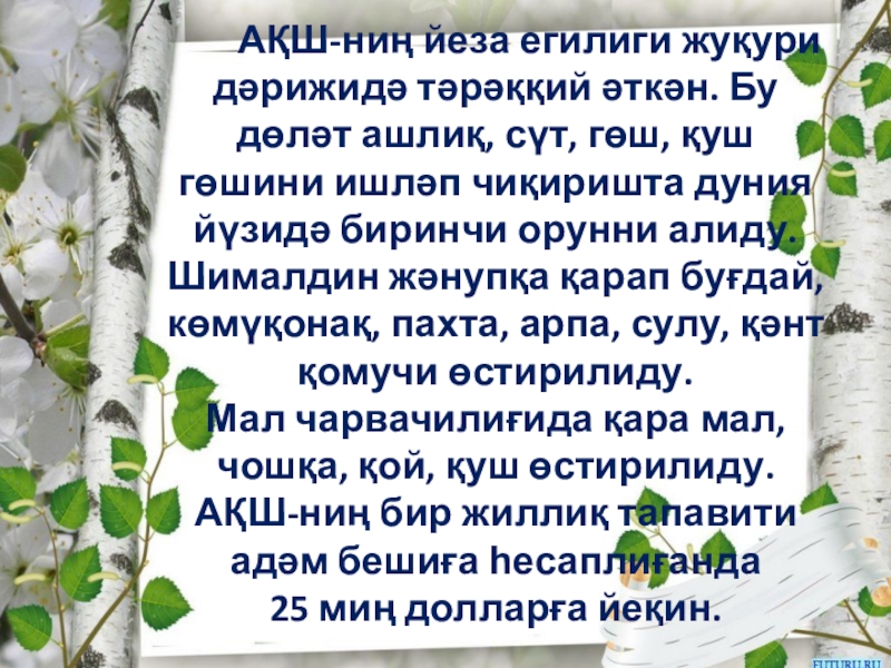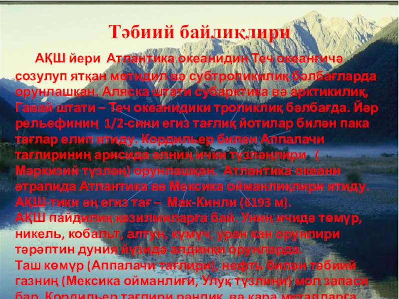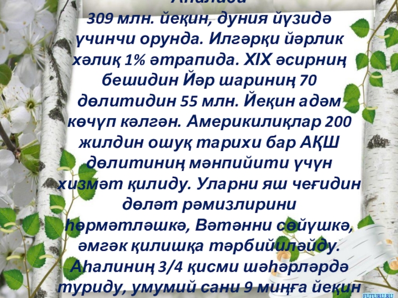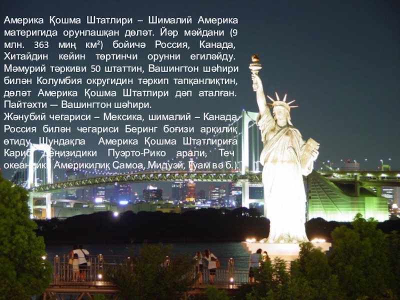 Америка Қошма Штатлири тоғрисида қошумчә мәлуматларни оқуп келиш.
