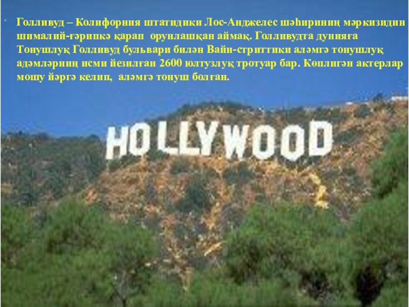 Голливуд – Колифорния штатидики Лос-Анджелес шәһириниң мәркизидин