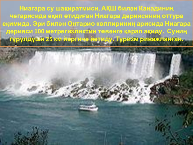 Слайд 33Ниагара су шақиратмиси, АҚШ билән Канадиниң чегарисида еқип өтидиған Ниагара дәриясиниң