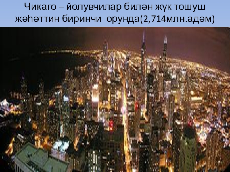 Слайд 21Чикаго – йолувчилар билән жүк тошуш жәһәттин биринчи орунда(2,714млн.адәм)